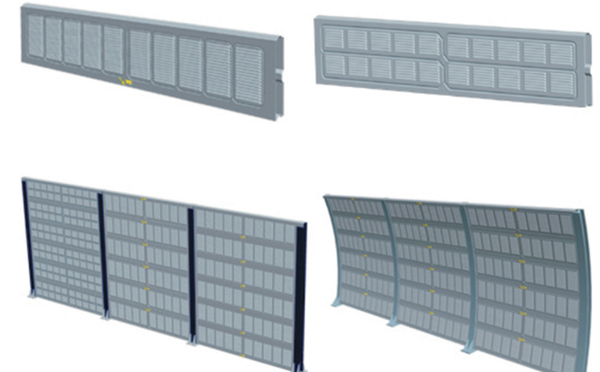 冷卻塔聲屏障組件有立柱、單元板塊、其他連接件等,冷卻塔聲屏障材質有鋁板、噴塑板、PC板等多種選擇。需要注意:由于冷卻塔本身較高,所以聲屏障較高,考慮到工程投資及抗風、抗震等因素。